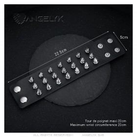 Punk Force Armband mit Nieten 3-reihig Leder Schwarz