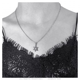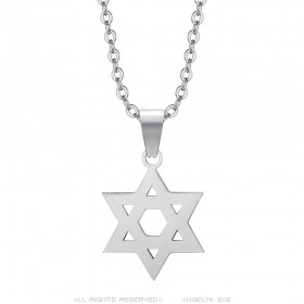 Davidstern-Anhänger, 15 mm, Kette 50 cm, Stahl, Silber