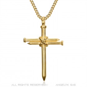 Kreuzanhänger Mann 3 Nägel Edelstahl Gold