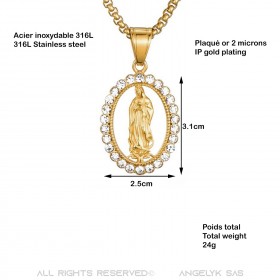 Anhänger Jungfrau Maria Strass Stahl Goldkette Halskette