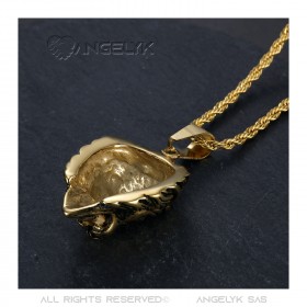 Löwenkopf-Halskette für Herren Stahl Gold Vintage