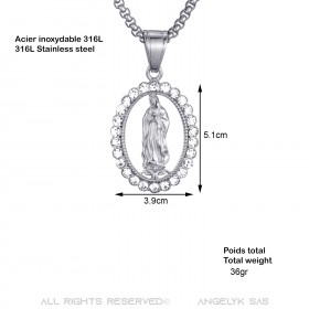 Großer Anhänger Jungfrau Maria Strass Stahl Silber Halskette Kette