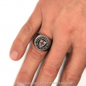 Oben eingetragen ist der motto "Signum Templi Militie" umgibt ein schild wappen templer mit seiner roten kreuz.