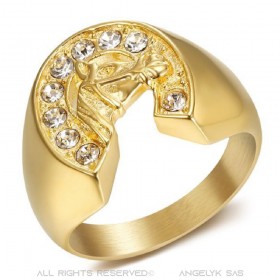 Siegelring Stahl Gold Hufeisen Elvis Diamanten