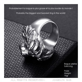 Exklusive Kreation von Angelyk SAS für diesen Löwenkopfring, offenes Maul, geformt in der Masse aus Rohstahl.