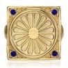 Zigeunerring Stahl, Gold und Saphir, der das Rad der Reiseflagge darstellt.
