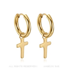 Paar Herren Ohrringe Creolen Katholisches Kreuz Stahl Gold