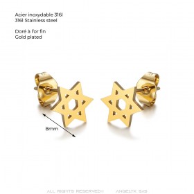 Davidstern-Ohrringe aus Edelstahl, Gold, 8 mm