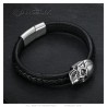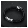 Biker skullbracelet combining braided black leather and 316l stainless steel.