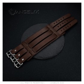 A width of 55mm, its three rows of supple leather closure belts are mounted on a strip of leather that is thicker and more rigid.
