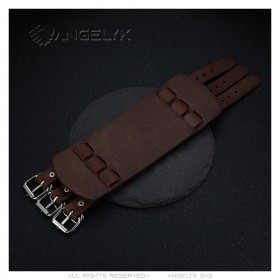 Quality and finish to this bracelet of strength classic men's genuine leather & metal color brown.