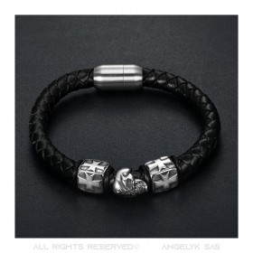 Mixture of real black leather and 316L stainless steel for this stunning bracelet templar.