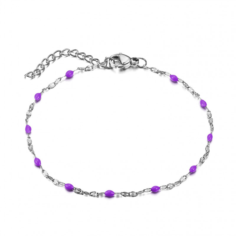Bracelet minimalist for women in steel, silver drops, enamel colored.