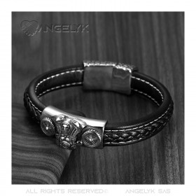 Superb piece for this bracelet for men black biker triker engine V-Twin in genuine braided leather and 316L stainless steel.