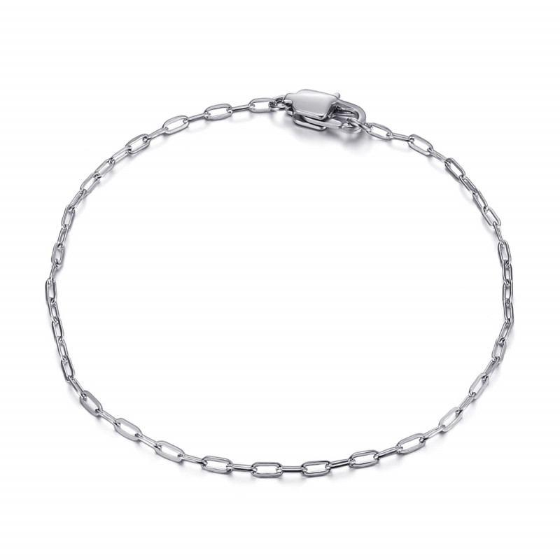 Its paperclip links measure 2mm wide by 5mm long, it is available in 4 different lengths: 16, 18, 20 or 22cm.