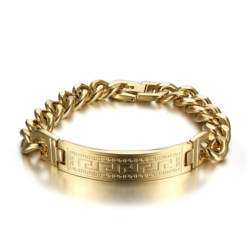 Curb bracelet gold man greek key in stainless steel gilded with fine gold