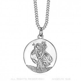 Pendant necklace medal with the effigy of St. Christopher stainless steel 316L.