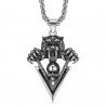 Pendant medallion biker representing a head of a tiger with claws and fangs who overcomes 2 triangles enclosing a pretty head of death.