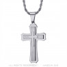 Men's cross necklace, triple embossed cross pendant in stainless steel with its chain