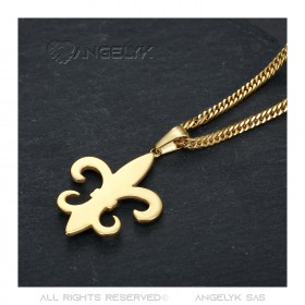 Sublime set pendant + chain for man in the shape of a fleur-de-lis well-made.