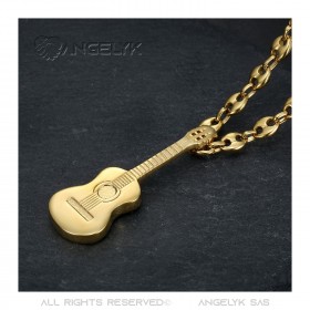 Bobijooguitar pendant, Exclusive creation, Stainless steel and Gold, Coffee bean chain