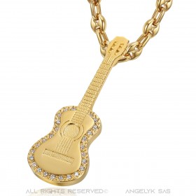 Guitar diamondpendant, Exclusive creation, Stainless steel and Gold, Coffee bean chain