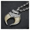 This silver-plated stainless steel double lion claw pendant is a bold and imposing piece, designed for modern men who want to show off their inner strength. The resin claws perfectly mimic the appearance of a real lion, while offering an ethical alternative. The lion, a symbol of power and nobility, is finely detailed and its eyes, in faux zirconium rubies, add a touch of mystery and intensity.