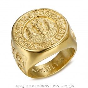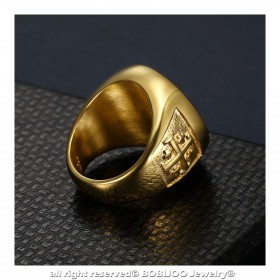 This signet ring for man 316L stainless steel gold finish with gold PVD* (plated, 2 microns).