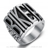 Men's signet ring with BIKER inscription, a ring carved in steel.