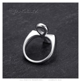 The symbol of the Ankh, representing eternal life in Egyptian culture, adds profound meaning to this accessory. The silver-plated stainless steel ensures the ring's durability and resistance to corrosion, while retaining its shine and brilliance.