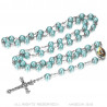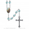 Lourdes rosary composed of around 60 blue aquamarine-style beads.