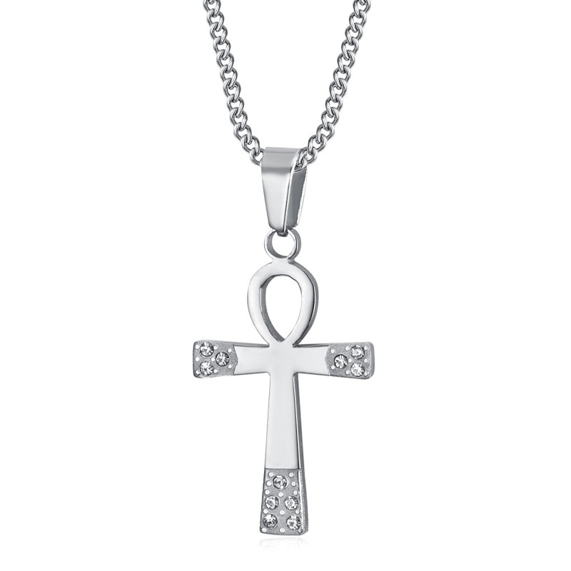 The ankh cross measures 28x18mm (excluding the ring and clasp) and is set with 11 fake zirconium diamonds.