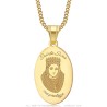 Discover our magnificent oval medal pendant representing Saint Sara, protector of the gypsies, made from stainless steel gilded with fine gold. This pendant comes with a delicate 45cm chain, perfect for everyday wear.