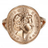 Glossy finish and color "pink gold" for this sublime ring with fine gold, which reproduces a coin 1 penny Elizabeth II.