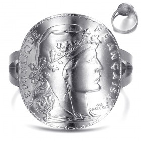 Anillo anillo de sellar la Polla Marianne de Acero 316L de Plata de la Moneda de 20 Francos De 1914 Libertad Igualdad FraternidadDebes estar registrado- 9,96 €