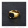 Anillo de cabujón de forma cuadrada con ónix negro, joyería para hombre o mujer en acero y oro.