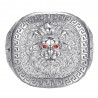 Anillo cabeza de león Llave griega Acero inoxidable Plata Rubí rojo