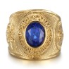 Este anillo de sello universitario rinde homenaje a las Fuerzas Armadas francesas, elaborado en acero inoxidable chapado en oro para combinar robustez y elegancia. Adornado con una piedra azul similar al zafiro, destaca por su diseño único y refinado. El anillo está decorado con el emblema del Estado Mayor de las Fuerzas Armadas y luce con orgullo la inscripción "Honneur et Patrie" (Honor y Patria), acompañada del águila napoleónica, símbolo histórico de poder y valentía.