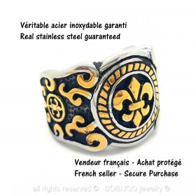 Anillo Anillo anillo de la Flor de Lis de Oro y de Acero Inoxidable Negro