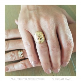 Anillo Curva 1 Centavo Isabel II de Acero Brillante de Oro