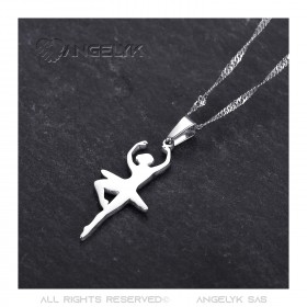 Colgante Collar Bailarina Acero Plateado + Cadena