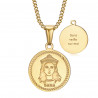 Medalla bautizo Santa Sara para niña o niño gitano, cadena incluida, Acero y oro