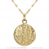 Medalla de Lourdes en acero y oro, Creación original de Angelyk, Cadena de 50cm incluida