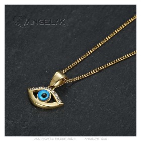 Colgante ojo azul de mujer Acero inoxidable Circonio oro