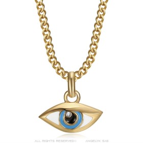 Colgante femenino pequeño ojo azul Acero inoxidable Circonio oro