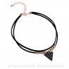 Ras de Cuello Triángulo de Mármol Negro de Doble Rango y Perlas Doradas