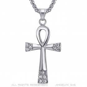Colgante Cruz de la Vida 60mm Acero Inoxidable Plata Collar de Diamantes