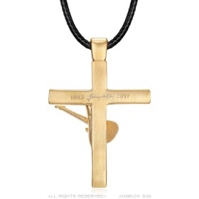 Colgante de acero inoxidable con forma de cruz de Johnny Hallyday y guitarra dorada y con diamantes