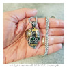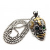 BOBIJOO Joyas te ofrece este magnífico colgante de la muerte de cráneo maya de acero inoxidable de mezcla de oro, plata y verde.