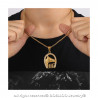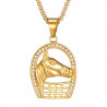 Acabados cuidados para este colgante de collar de hierro y cabeza de caballo para hombre o mujer en acero inoxidable dorado con oro fino (chapado en oro de 2 micras).